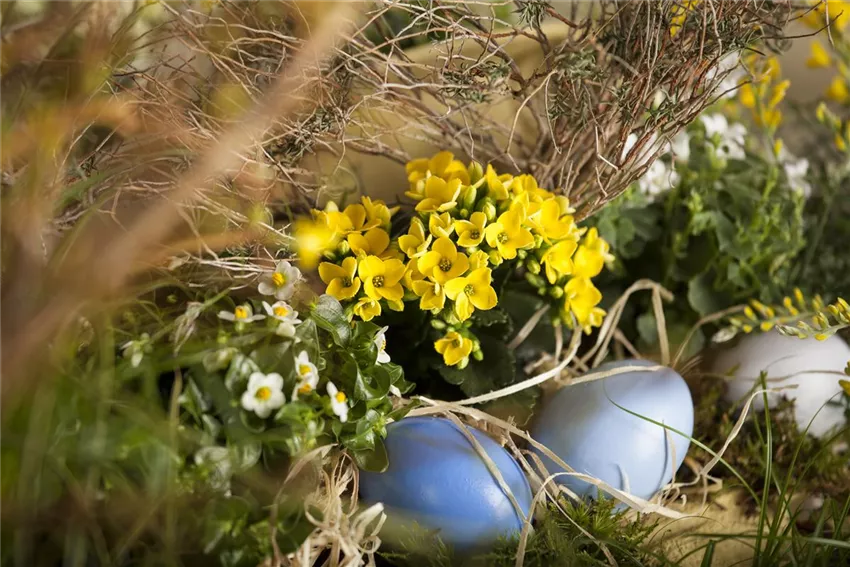 Natürlich muss der Garten für den Osterhasen Lust aufs Fest machen. Also schon mal bunt bemalte Eier an die passenden Gewächse hängen. Wie gut, wenn es einen Korkenzieherhasel im Garten gibt! Aber natürlich bietet ein gut sortierter Garten für den Osterhasen genügend Alternativen. Einen herrlicher Anblick erzeugen gelbe und weiße Narzissen im Mix, gern in einem Kübel arrangiert und von Küken und weißen Lämmern begleitet. Am besten als Eyecatcher an exponierter Stelle aufstellen.