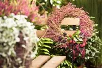 Die Kiste wird mit Besenheide und Glockenheide aufgefüllt. Wenn sich kleine Lücken gebildet haben, können die mit den rosa Stiefmütterchen aufgefüllt werden. Die passen farblich perfekt zur Heide. Dekorative Äste und Zweige können direkt in die Töpfe der Heide gesteckt werden. Das hält perfekt und verleiht der Kiste mehr Lebendigkeit. Besonders gut eignen sich die Zweige von Hagebutten oder Zieräpfeln, am besten mit Früchten dran. Wer keine Früchte im Gesteck haben will, kann junge Triebe vom Hartriegel nehmen. Die leuchten in einem kräftigen Rot.
